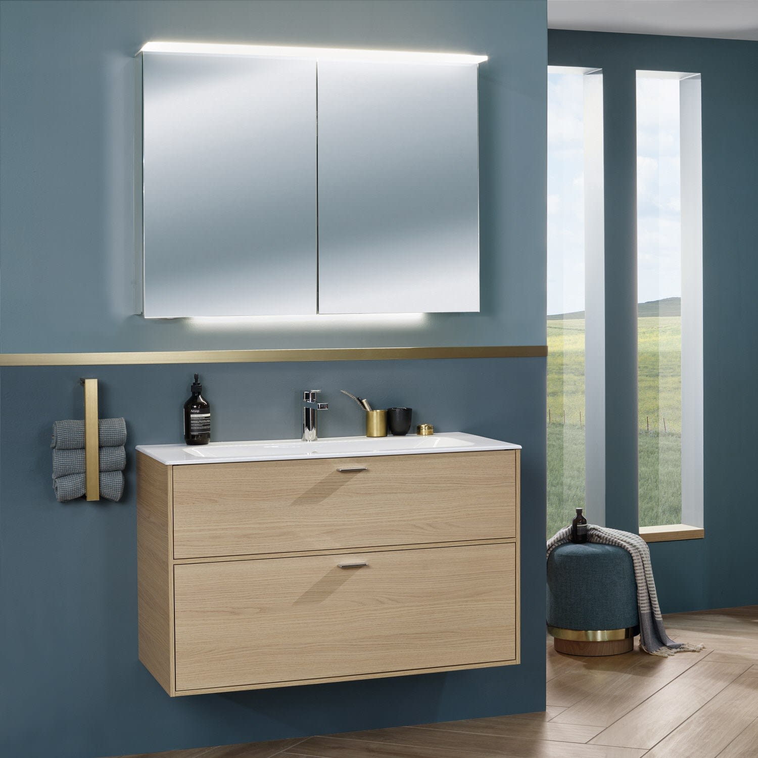 - mit 1 durchgehenden LED Waschplatzbeleuchtung 5,46 Watt