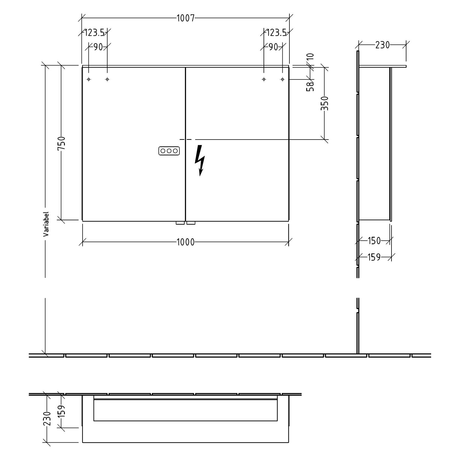 - Tiefe inkl. Leuchte: 23 cm