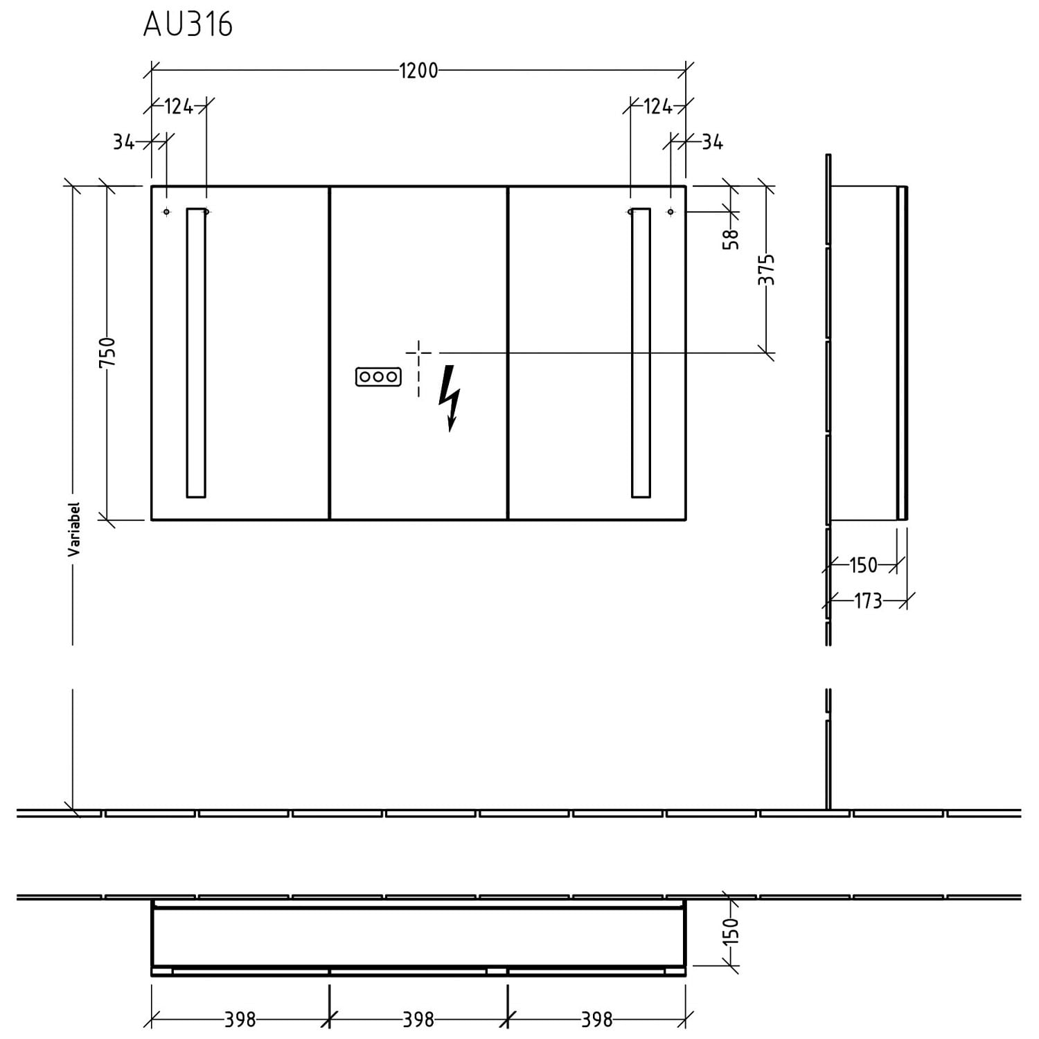 - Spiegeltürenbreite: 39,8 / 39,8 / 39,8 cm