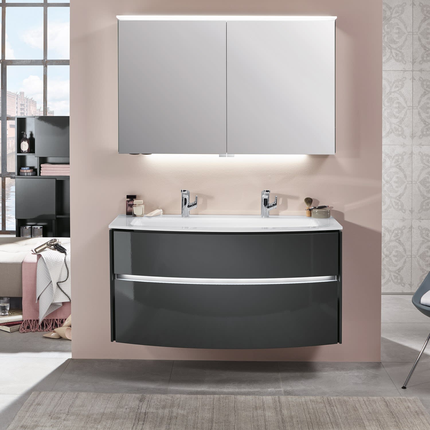 Sanipa Reflection Aluminium-Spiegelschrank ANNY 120 mit LED-Lichtsegel, mit Lichtsteuerung