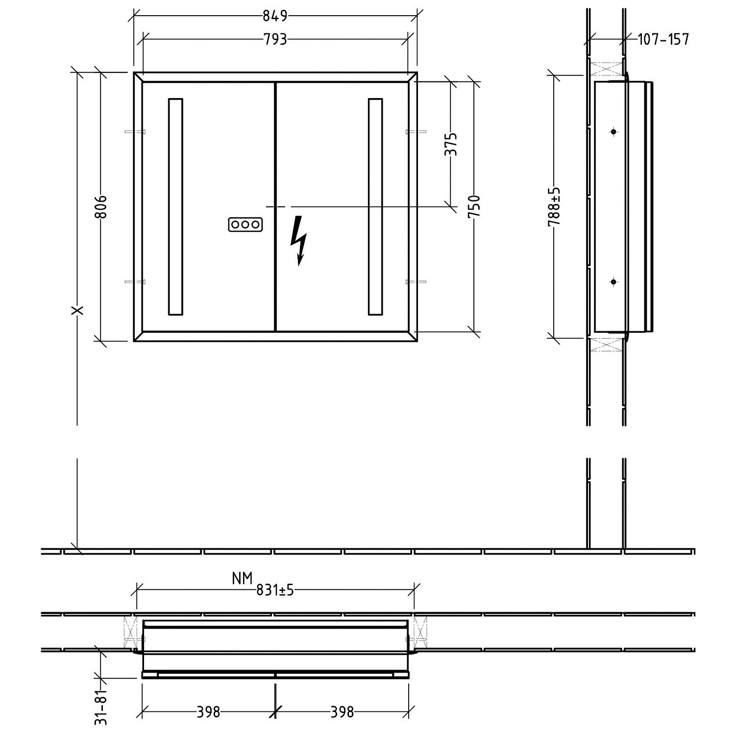 Sanipa Reflection Aluminium-Wandeinbau-Spiegelschrank WILMA 85 mit LED-Beleuchtung