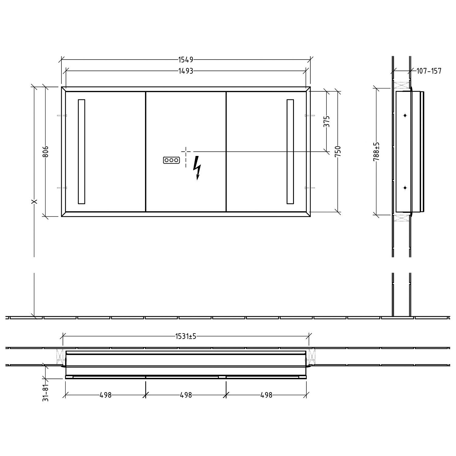 Sanipa Reflection Aluminium-Wandeinbau-Spiegelschrank WILMA 155 mit LED-Beleuchtung
