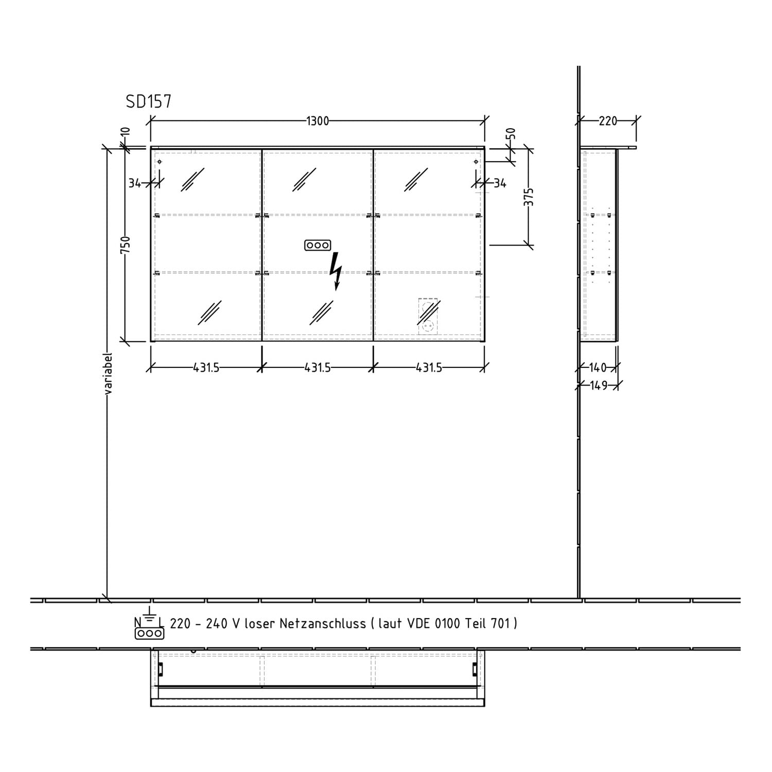 - Spiegeltürenbreite: 43,2 / 43,2 / 43,2 cm