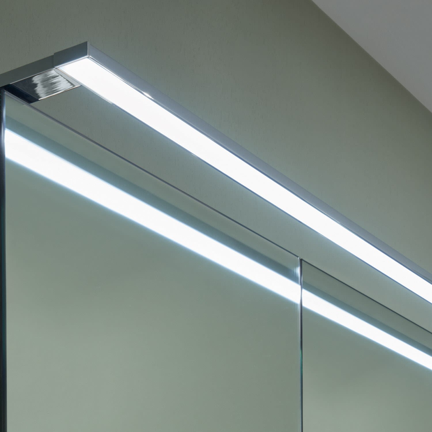 Die moderne LED-Aufsatzleuchte reicht über die ganze Breite und lässt sich
