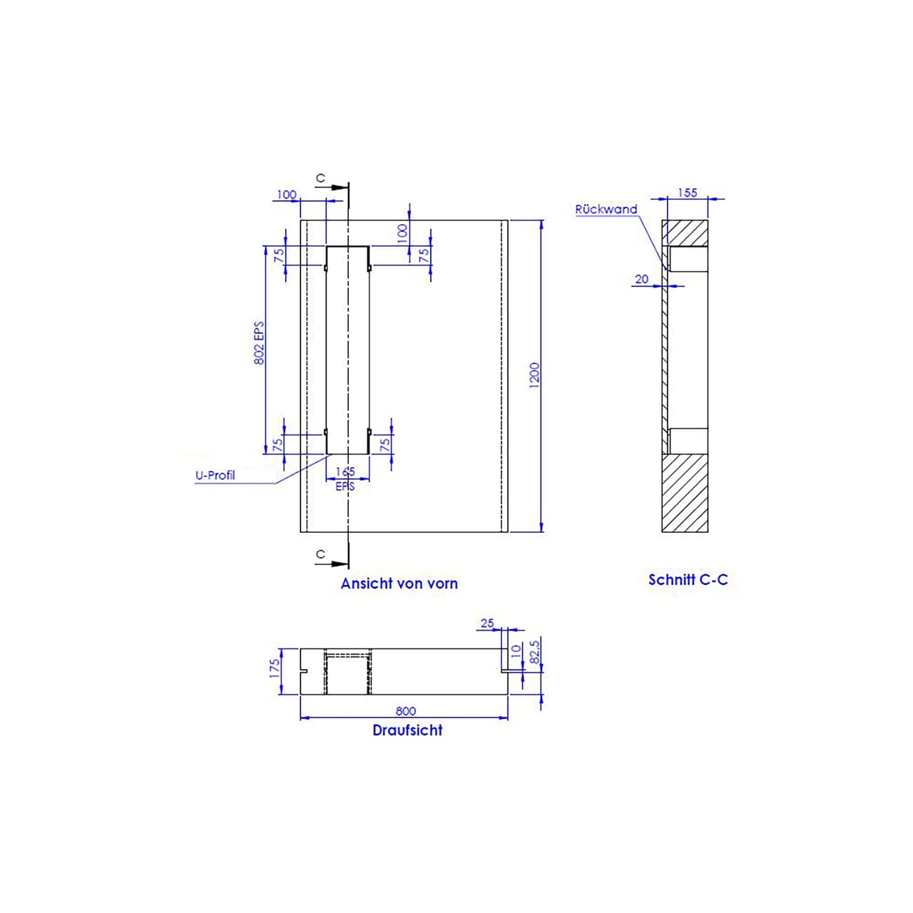 - mit 1 Systemschienen zur Befestigung des Moduls an einer bestehenden Wand