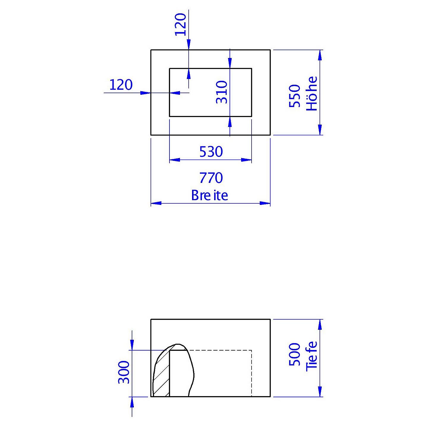 - Maße der Nische: Höhe 31 Breite 53 Tiefe 30 cm