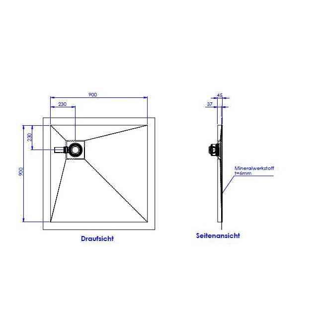 Schedel Plan Plus Mineral-Duschelement bodeneben 90 x 90 cm, Eck-Ablauf