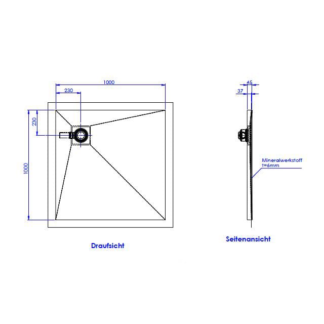 Schedel Plan Plus Mineral-Duschelement bodeneben 100 x 100 cm, Eck-Ablauf