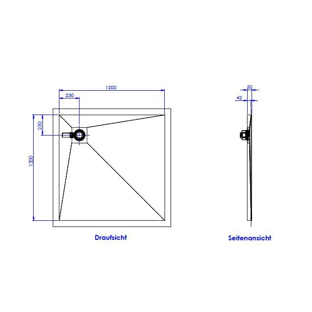 Schedel Plan Plus Mineral-Duschelement bodeneben 120 x 120 cm, Eck-Ablauf