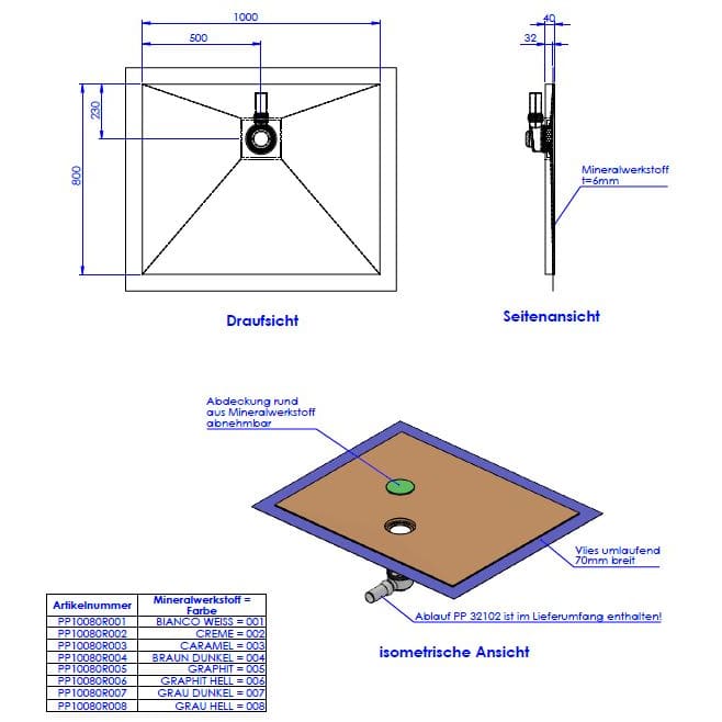 - inkl. Ablauf waagerecht DN 50, Art. PP 32102