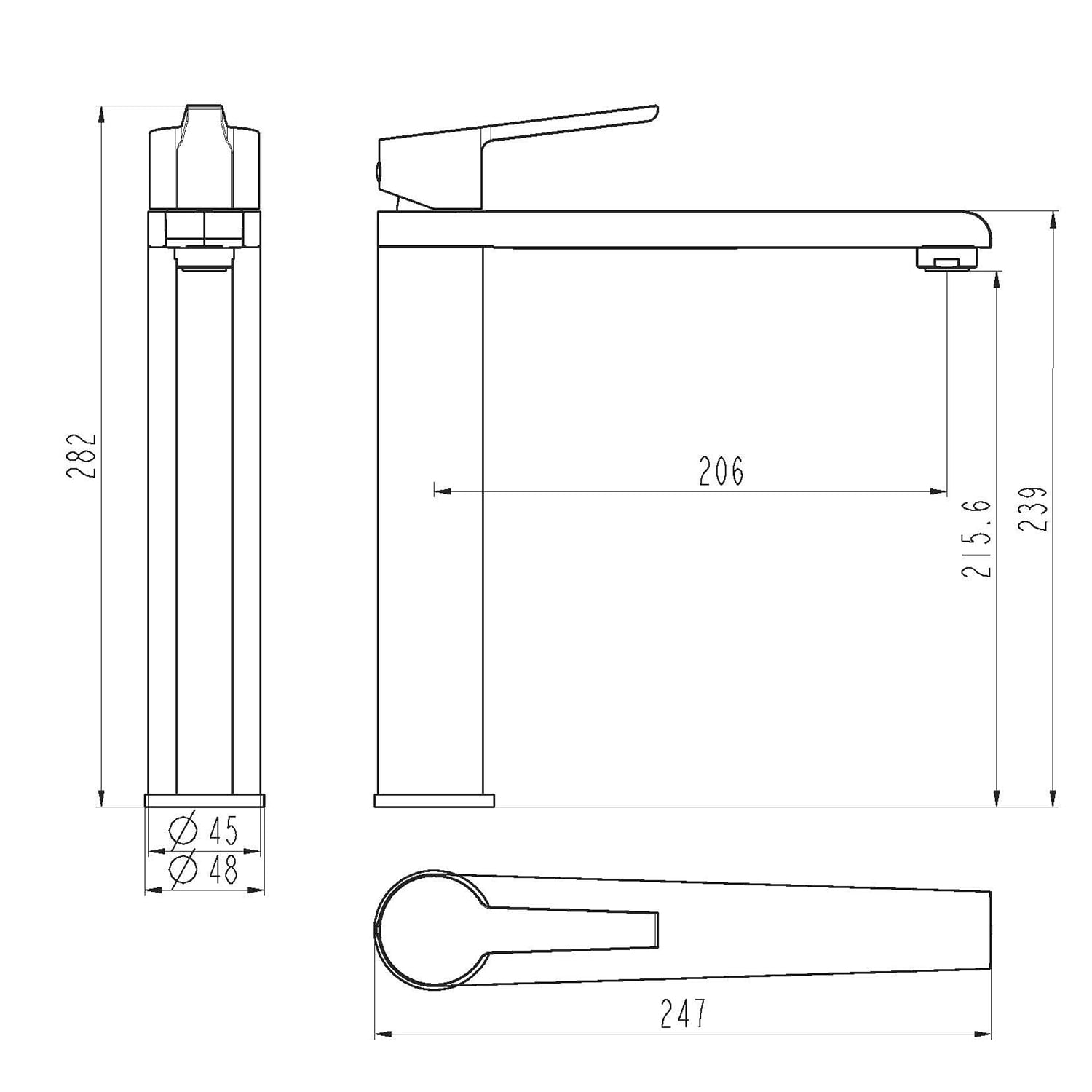 - Standarmatur mit hohem Auslauf