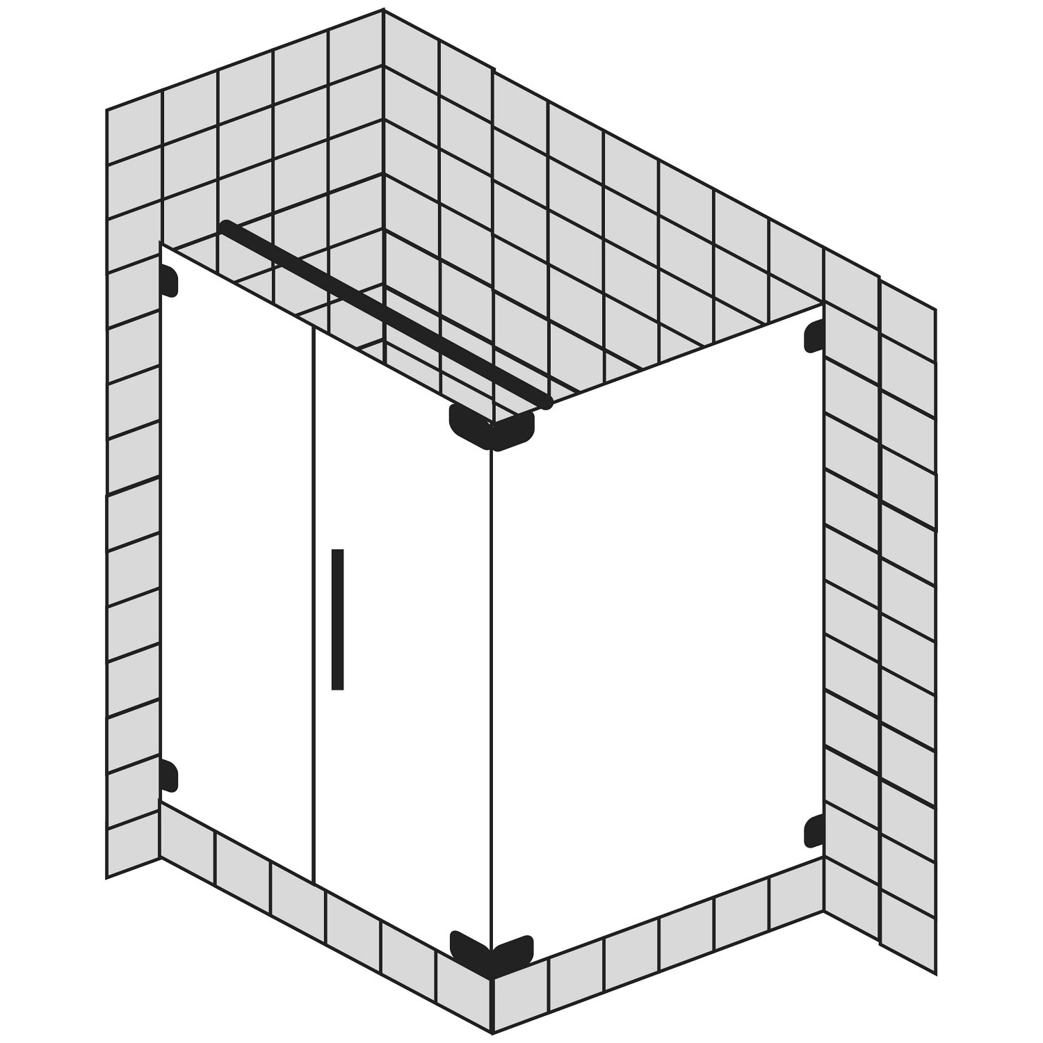 Drehtür mit Festteil links und Seitenwand