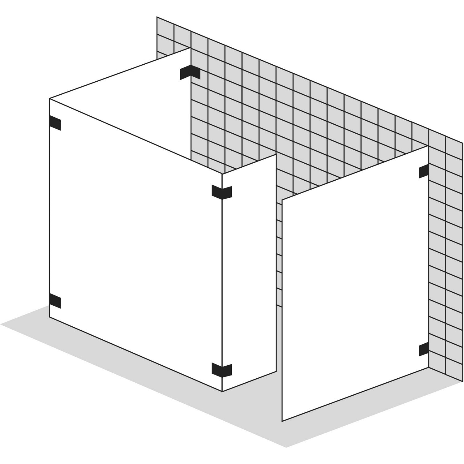 - Duschkabine in U-Form mit kleinem Festteil, Front- und Seitenwand links sowie freistehender Seitenwand rechts