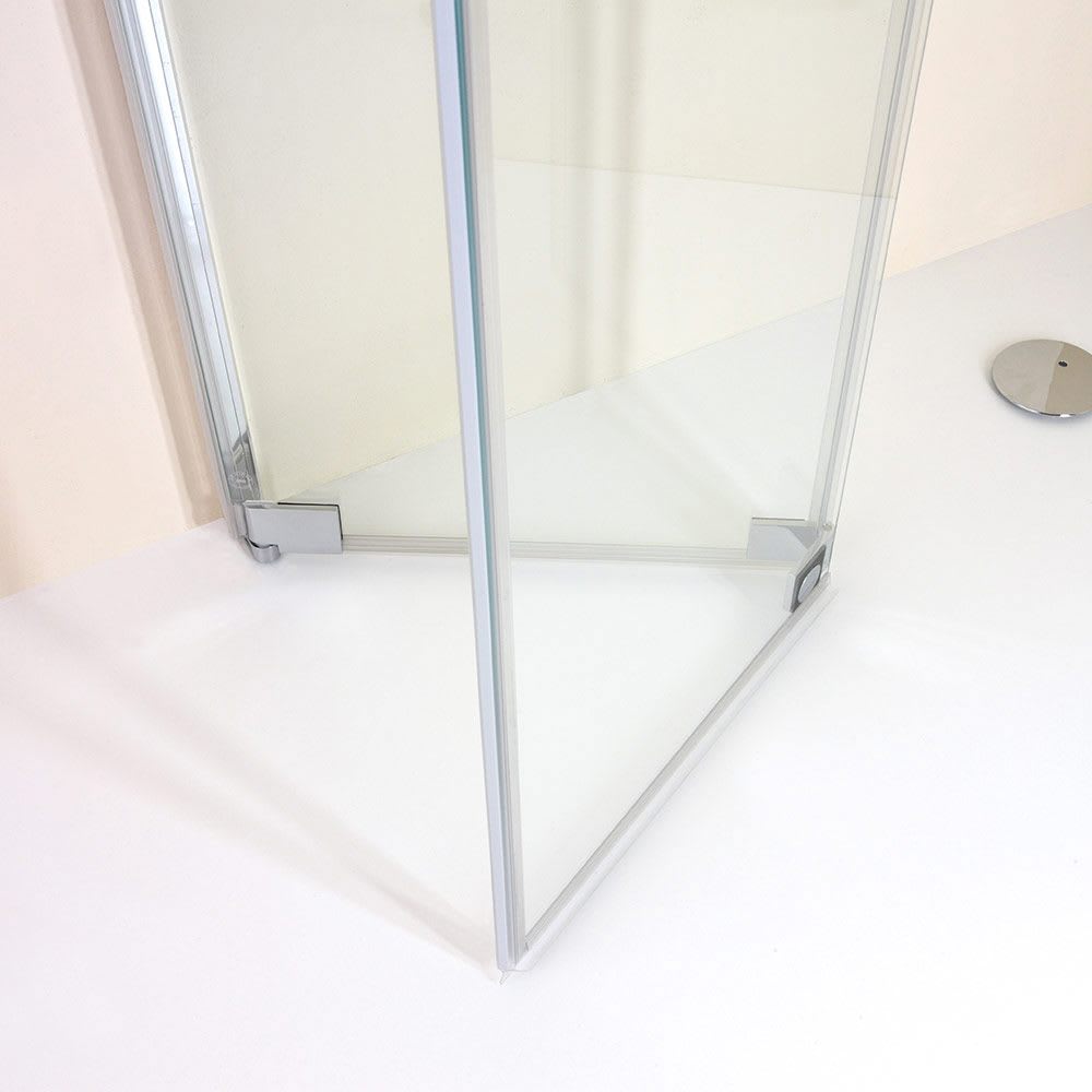 - bestehend aus zwei nach innen und außen schwenkbaren Wandelementen (0,8 cm) und zwei nach außen schwenkbaren Türelementen (0,6 cm) mit innen glasbündigen Scharnieren (Heb- und Senk-Pendelbeschlag)