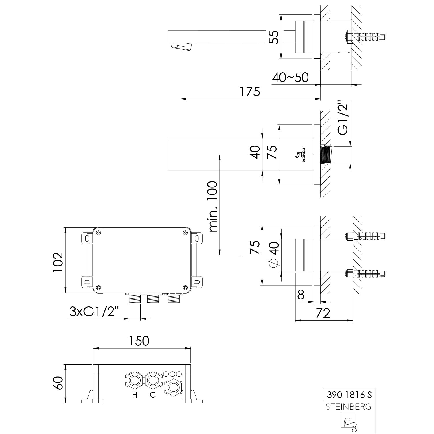 Steinberg iFlow vollelektronische Wand-Waschtisch- Armatur, Rosette eckig