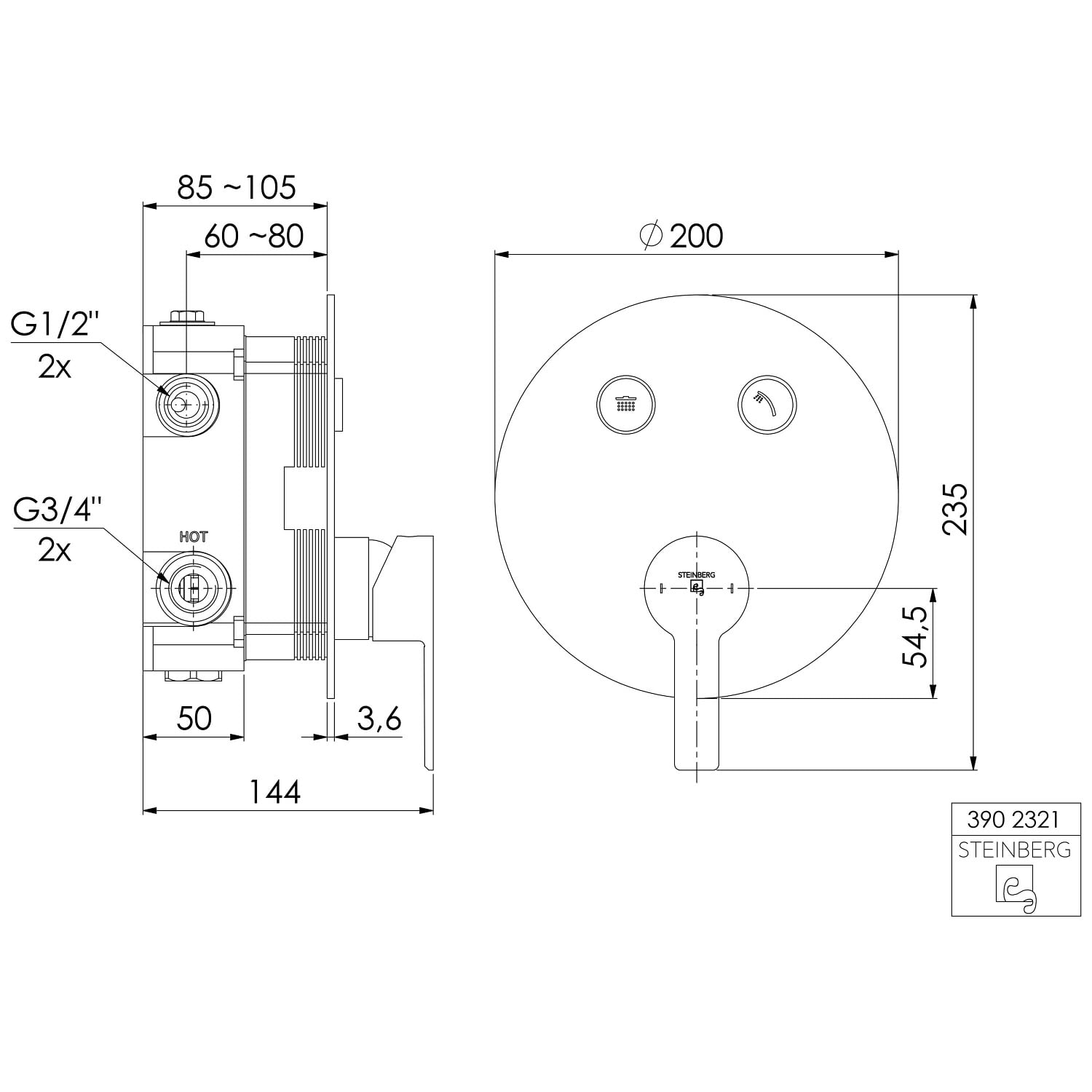 Steinberg Sensual Rain Unterputz-Einhebelmischer 3/4 für 2 Verbraucher, rund