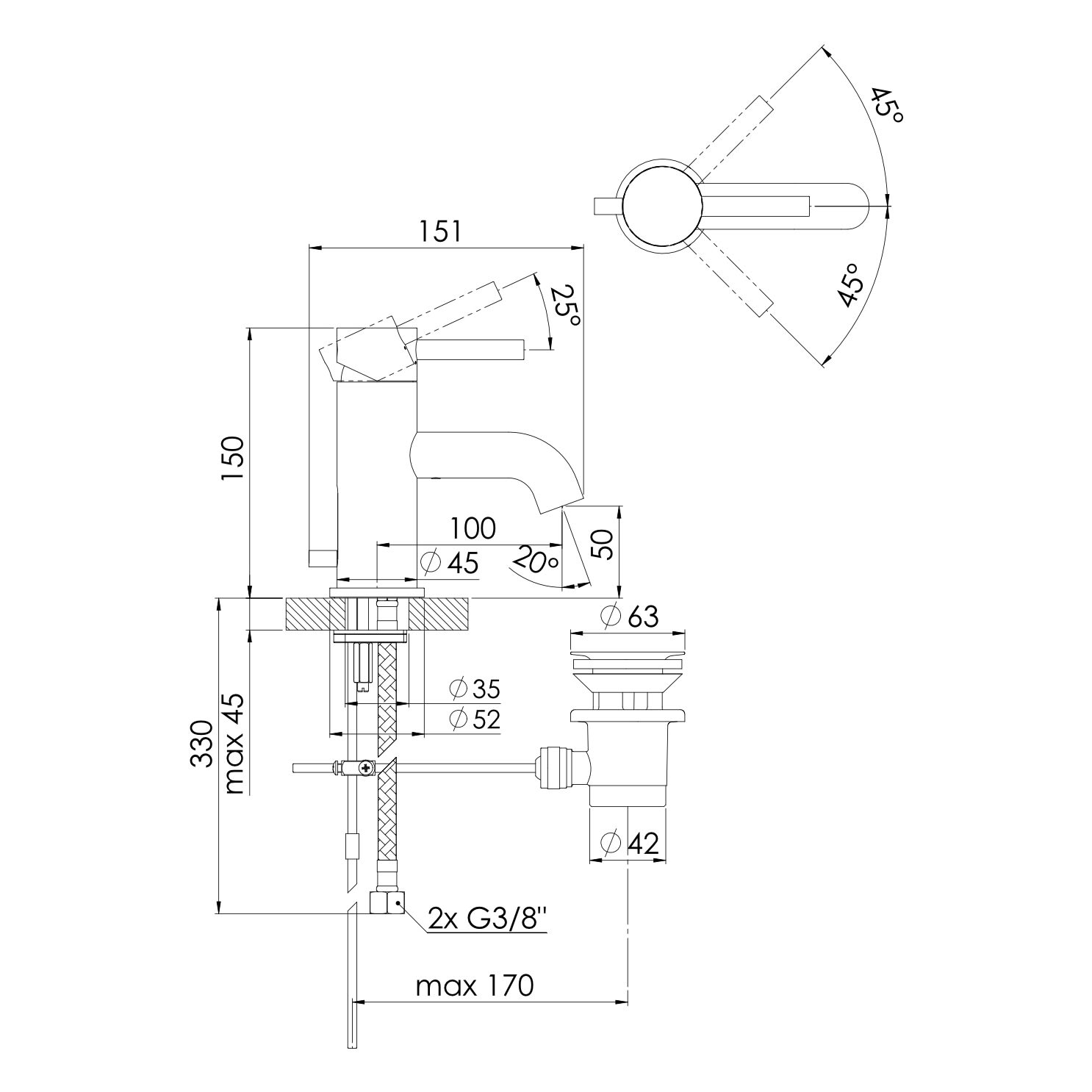 - mit Flexschläuchen 3/8"