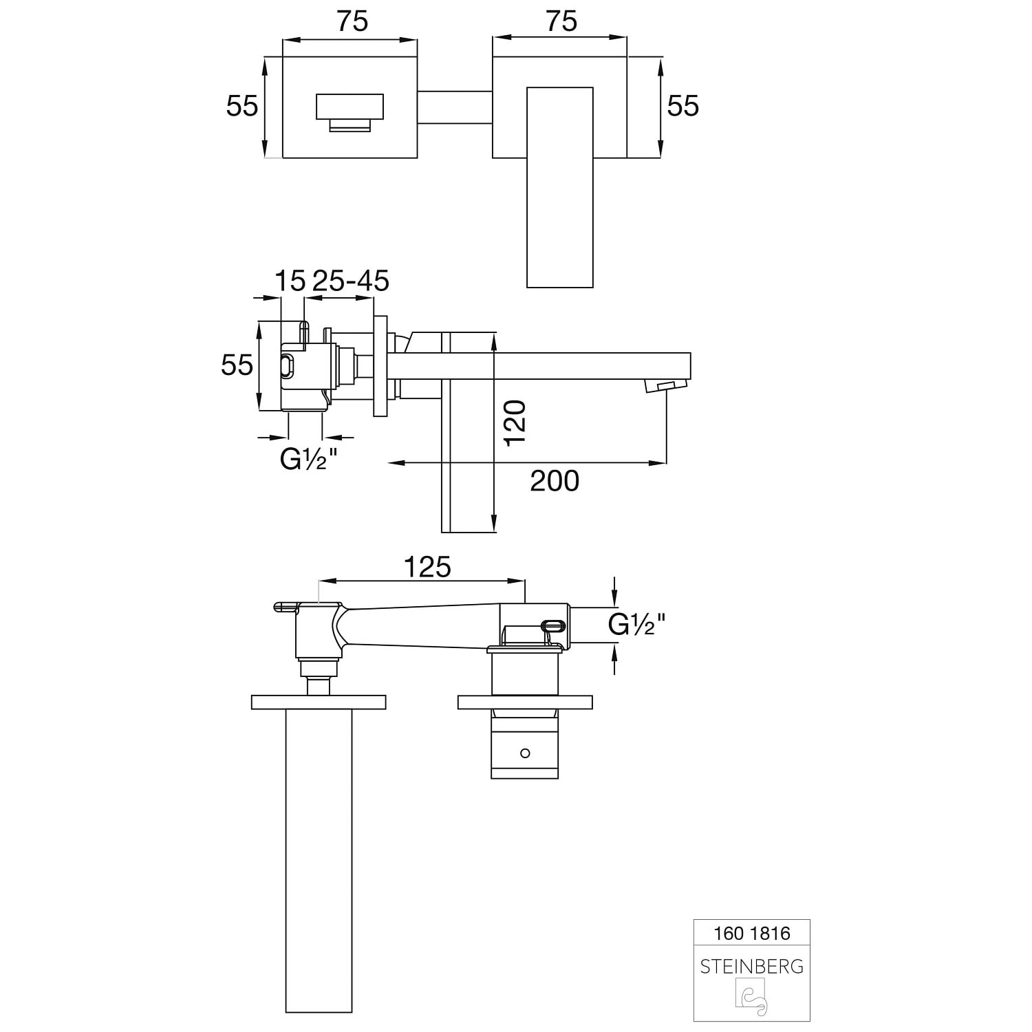 Steinberg Serie 160 Wand-Waschtisch Einhebelmischer Ausladung 20 cm