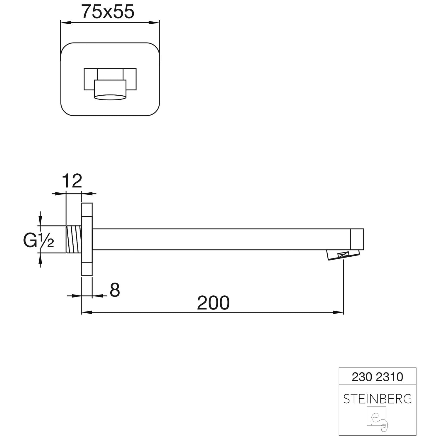 Steinberg Serie 230 Auslauf für Waschtisch oder Wanne Ausladung 20 cm