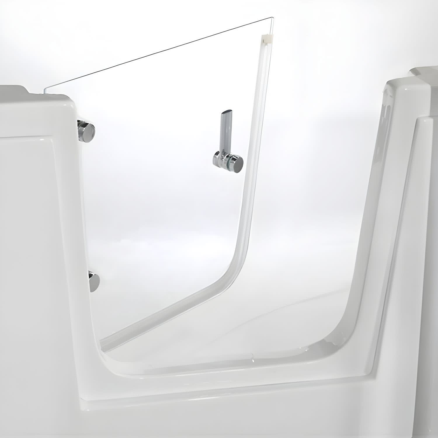 - Glastür aus 8 mm, Einscheiben Sicherheitsglas (ESG) mit 2 Messinggelenken, verchromt und 1 mechanischem Verschließregler und Verschlusshalter ohne Elektroanschluss