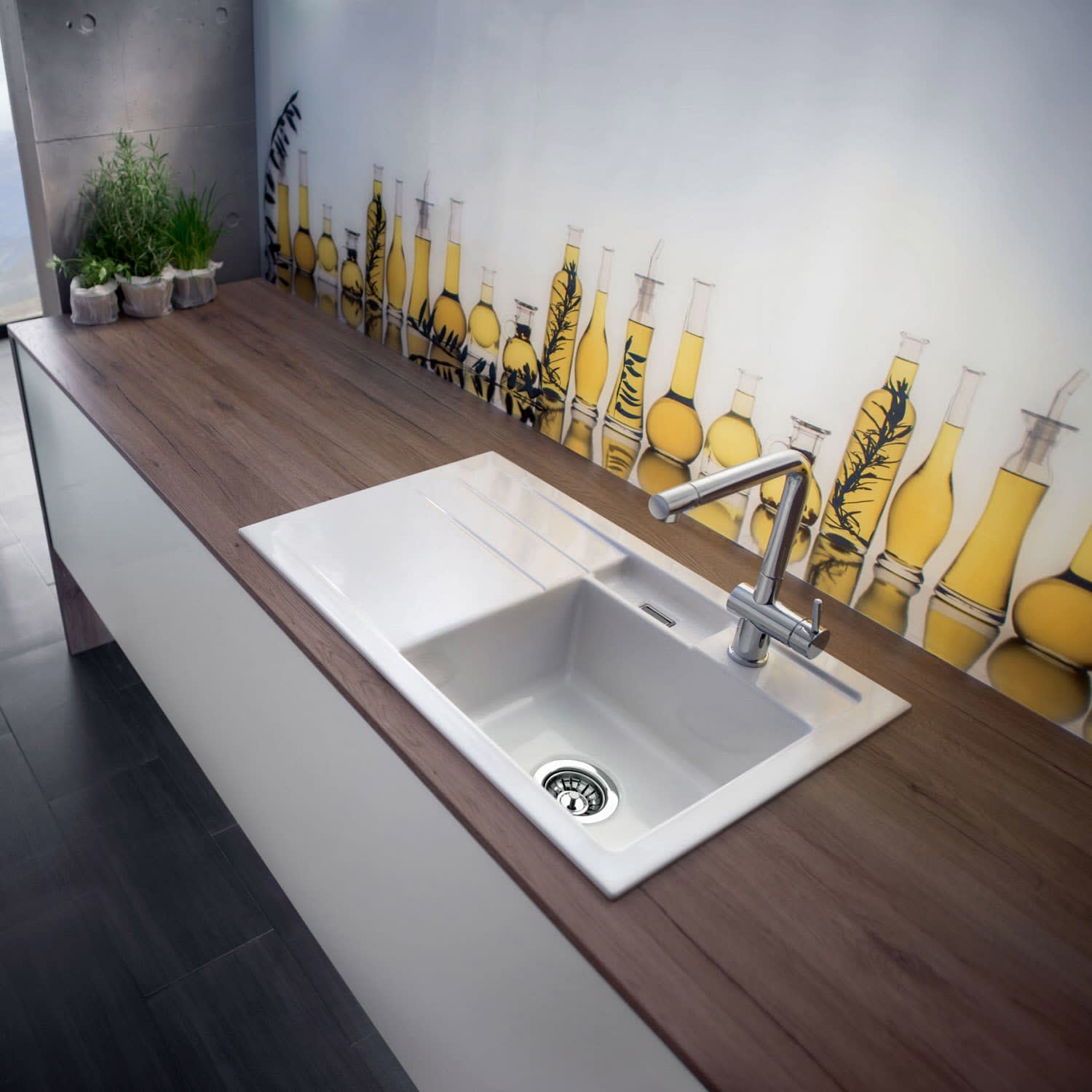 Systemceram Keradomo Bela 78 Einbauspüle rechts mit Handbetätigung, inkl. Armaturbohrung
