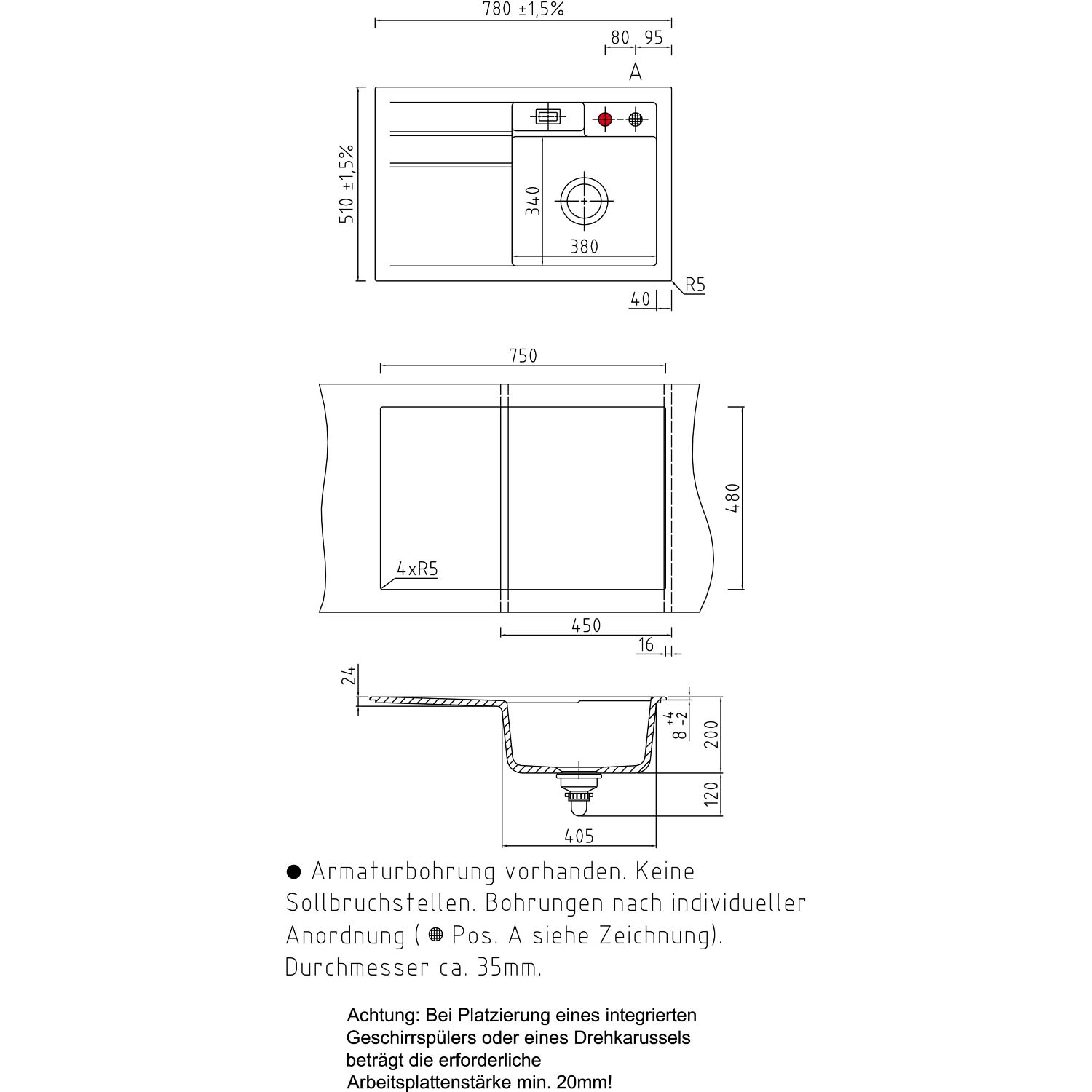 - inkl. Armaturbohrung