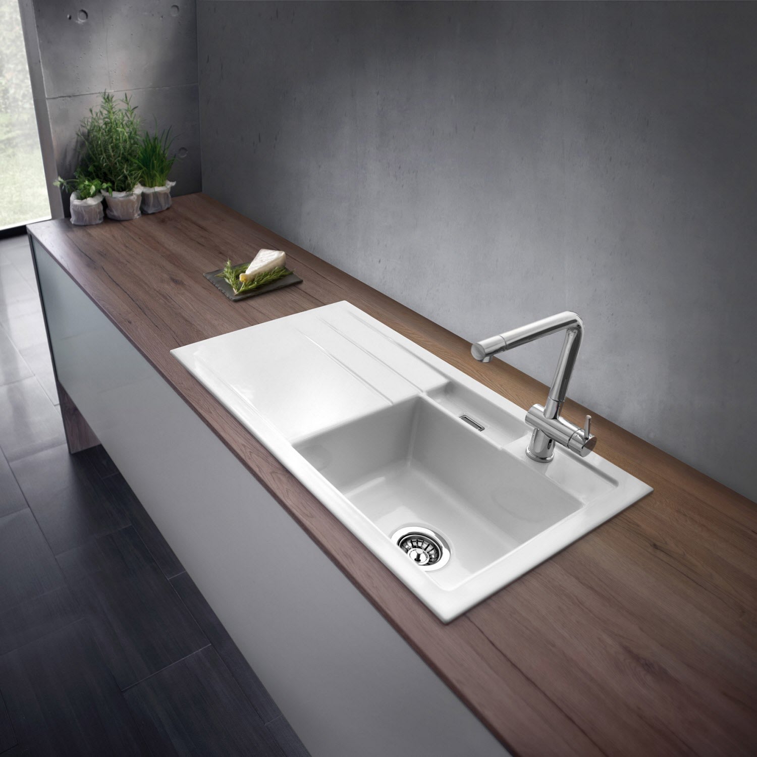 Systemceram Keradomo Bela 100 Einbauspüle rechts mit Handbetätigung, inkl. Armaturbohrung