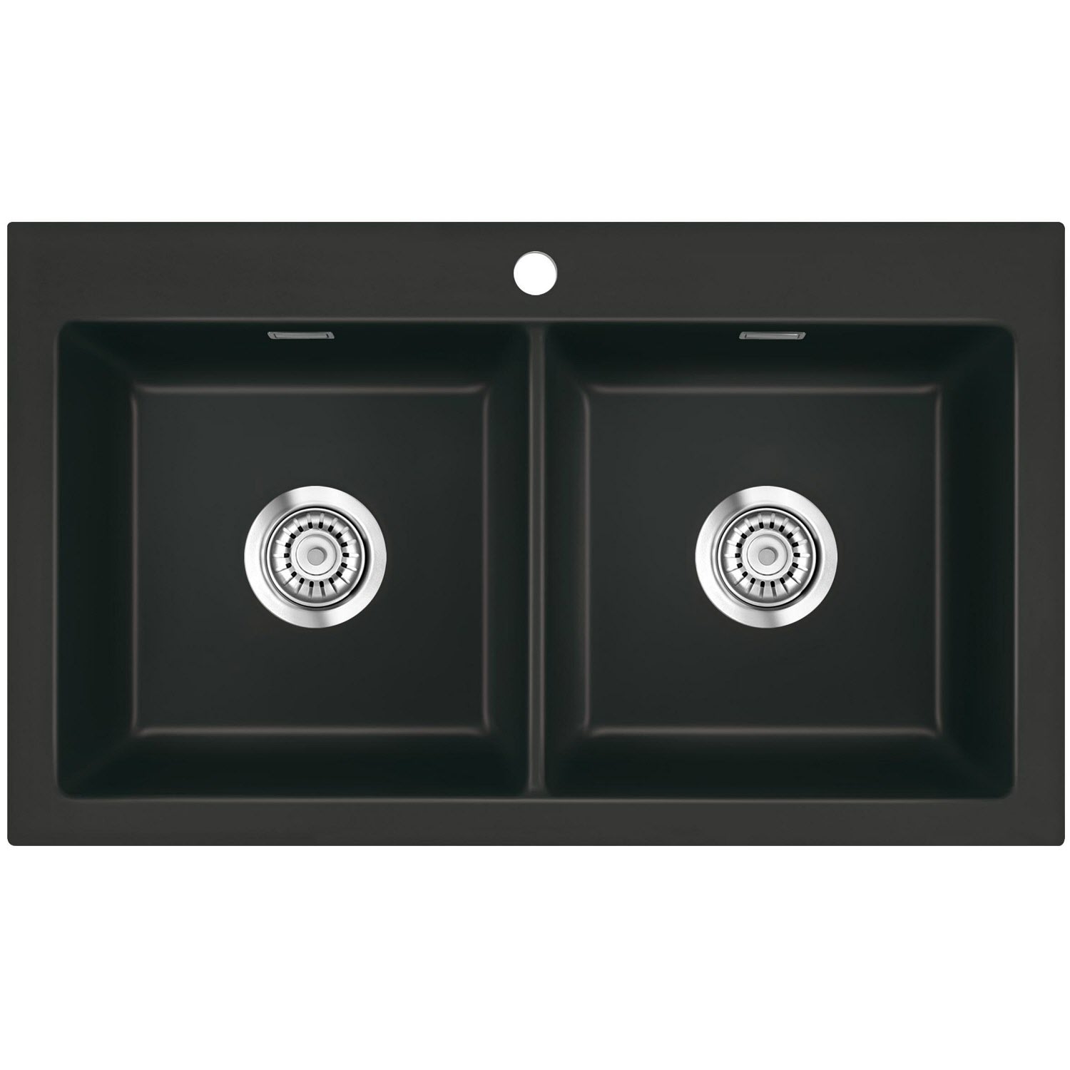 Systemceram Keradomo Mera Twin Einbauspüle mit Excenterbetätigung, inkl. Armaturbohrung