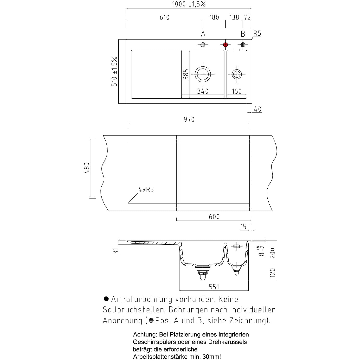 - inkl. Armaturbohrung