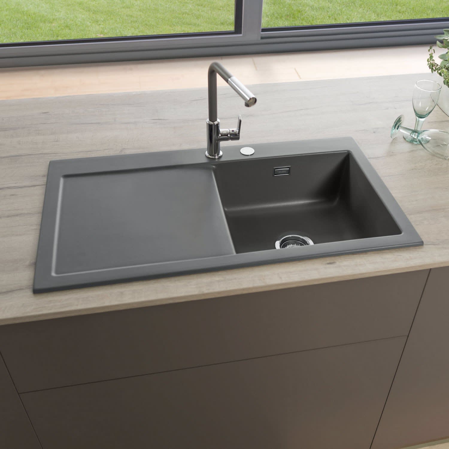 Systemceram Keradomo Mera 90 Einbauspüle rechts mit Excenterbetätigung, inkl. Armaturbohrung