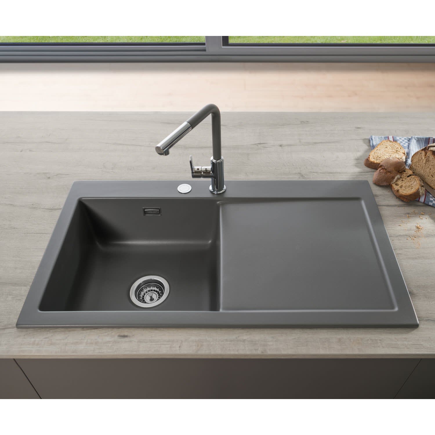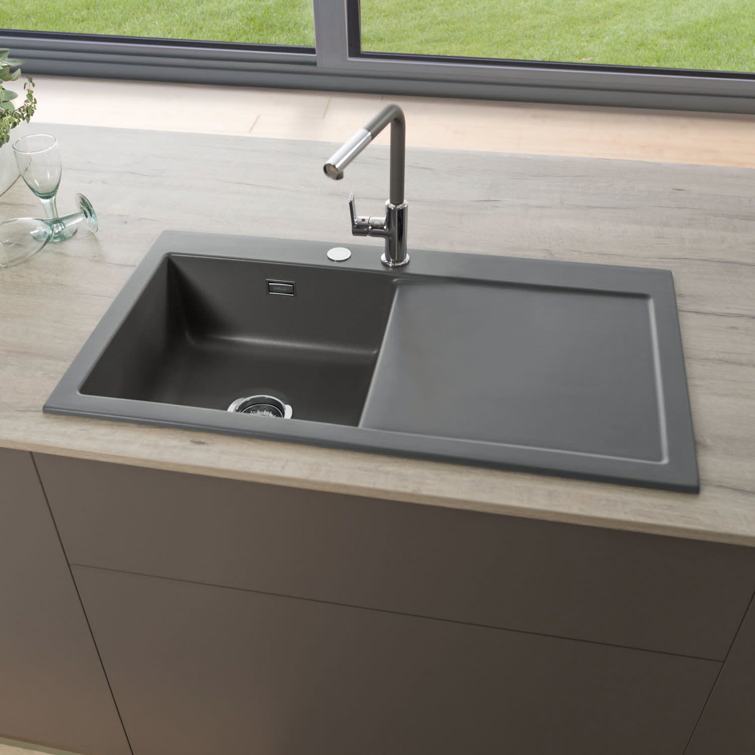 Systemceram Keradomo Mera 90 Einbauspüle links mit Excenterbetätigung, inkl. Armaturbohrung
