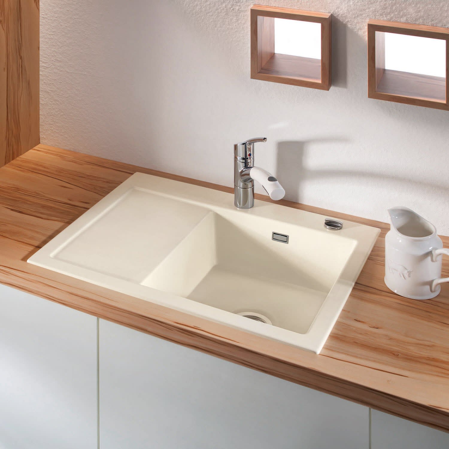 Systemceram Keradomo Mera 70 Einbauspüle rechts mit Excenterbetätigung, inkl. Armaturbohrung