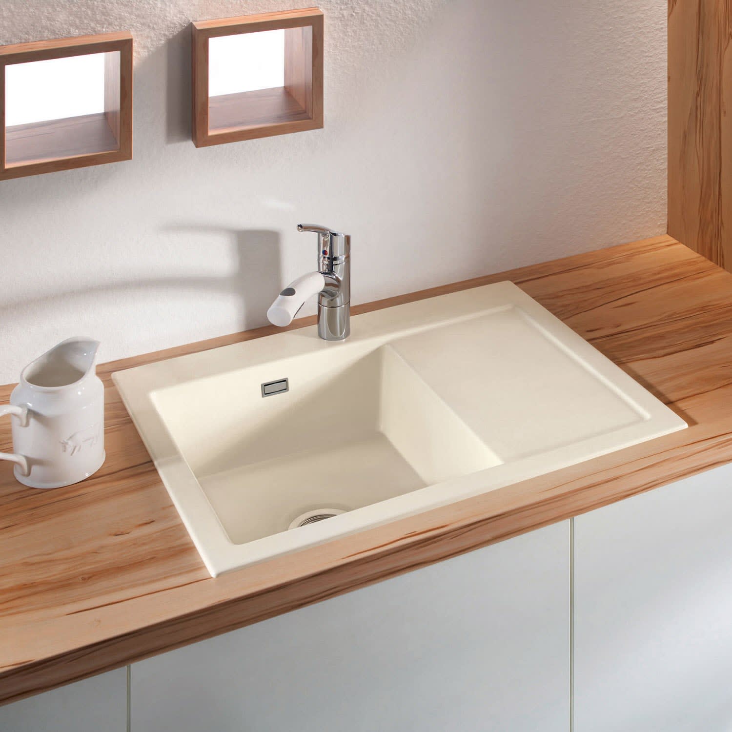 Systemceram Keradomo Mera 70 Einbauspüle links mit Handbetätigung, inkl. Armaturbohrung