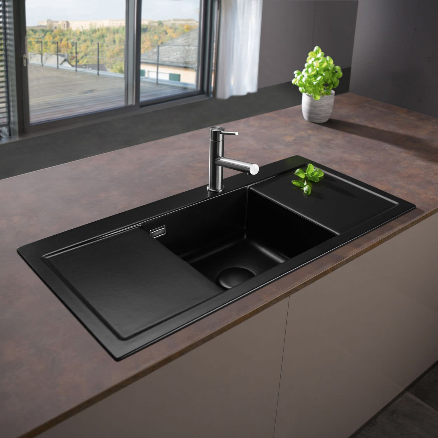 Systemceram Keradomo Mera Middle Einbauspüle mit Handbetätigung, ohne Hahnlochbohrung