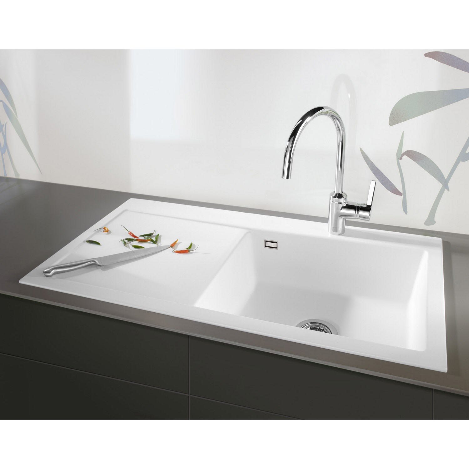 Systemceram Keradomo Mera 100 SL Einbauspüle rechts mit Handbetätigung, inkl. Armaturbohrung