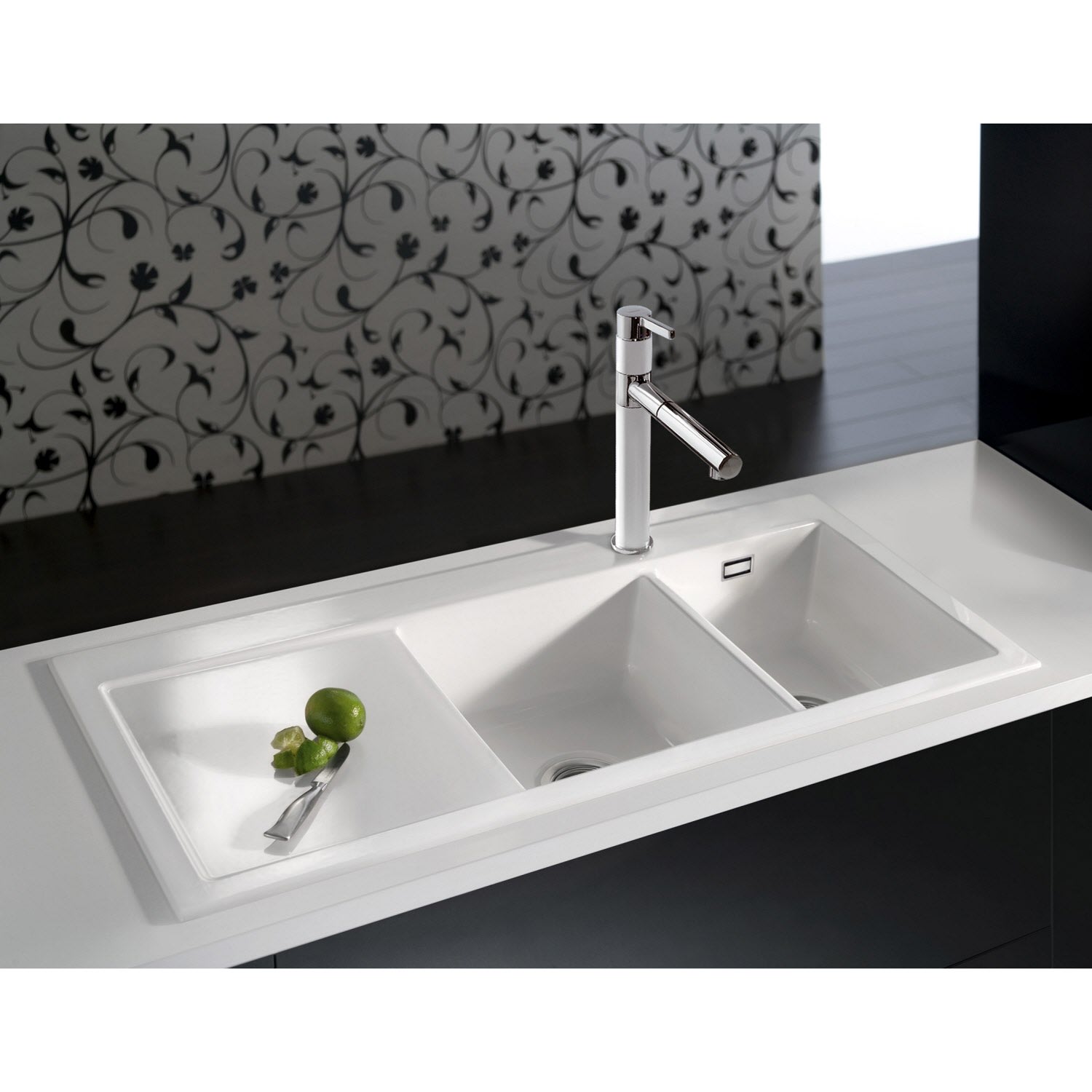 Systemceram Keradomo Mera Double Einbauspüle rechts mit Handbetätigung, inkl. Armaturbohrung