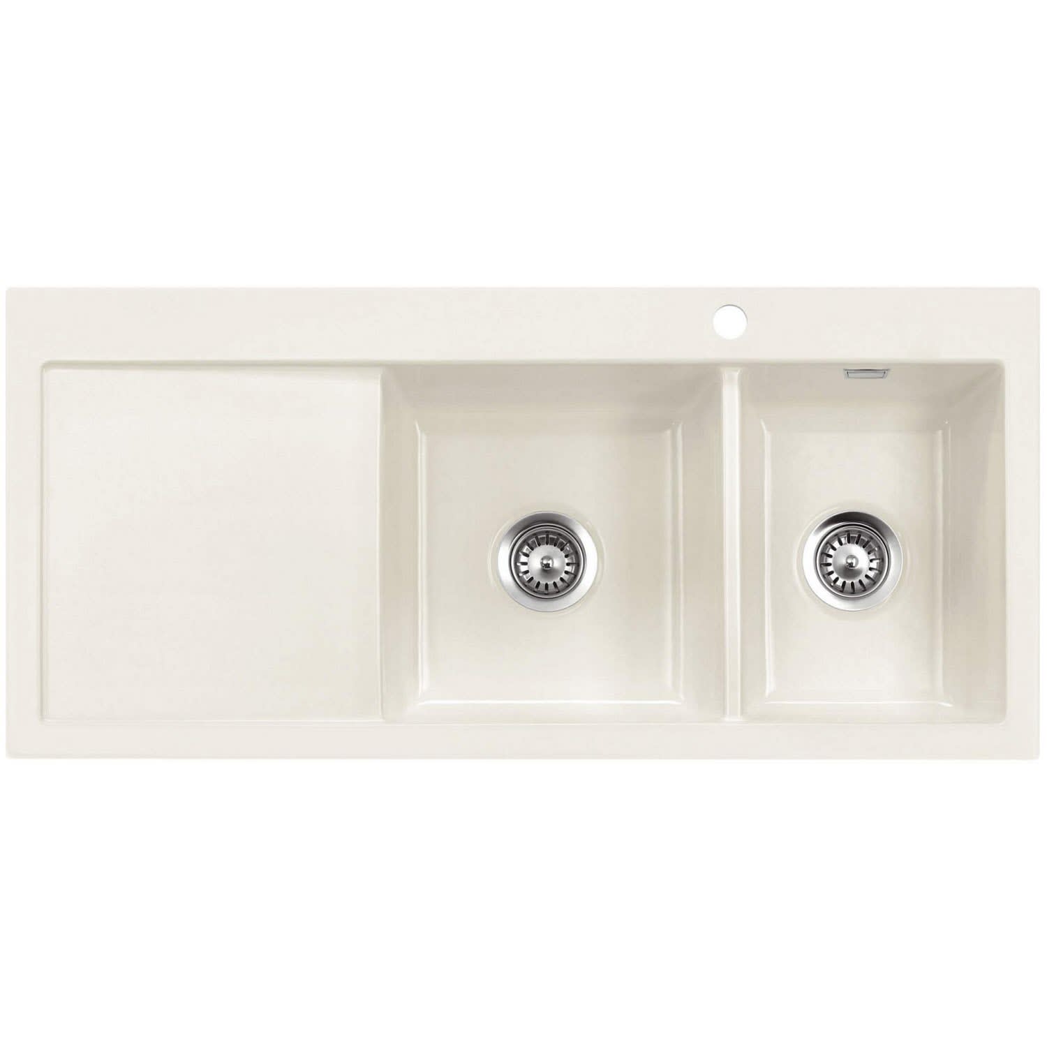 Systemceram Keradomo Mera Double Einbauspüle rechts mit Handbetätigung, inkl. Armaturbohrung