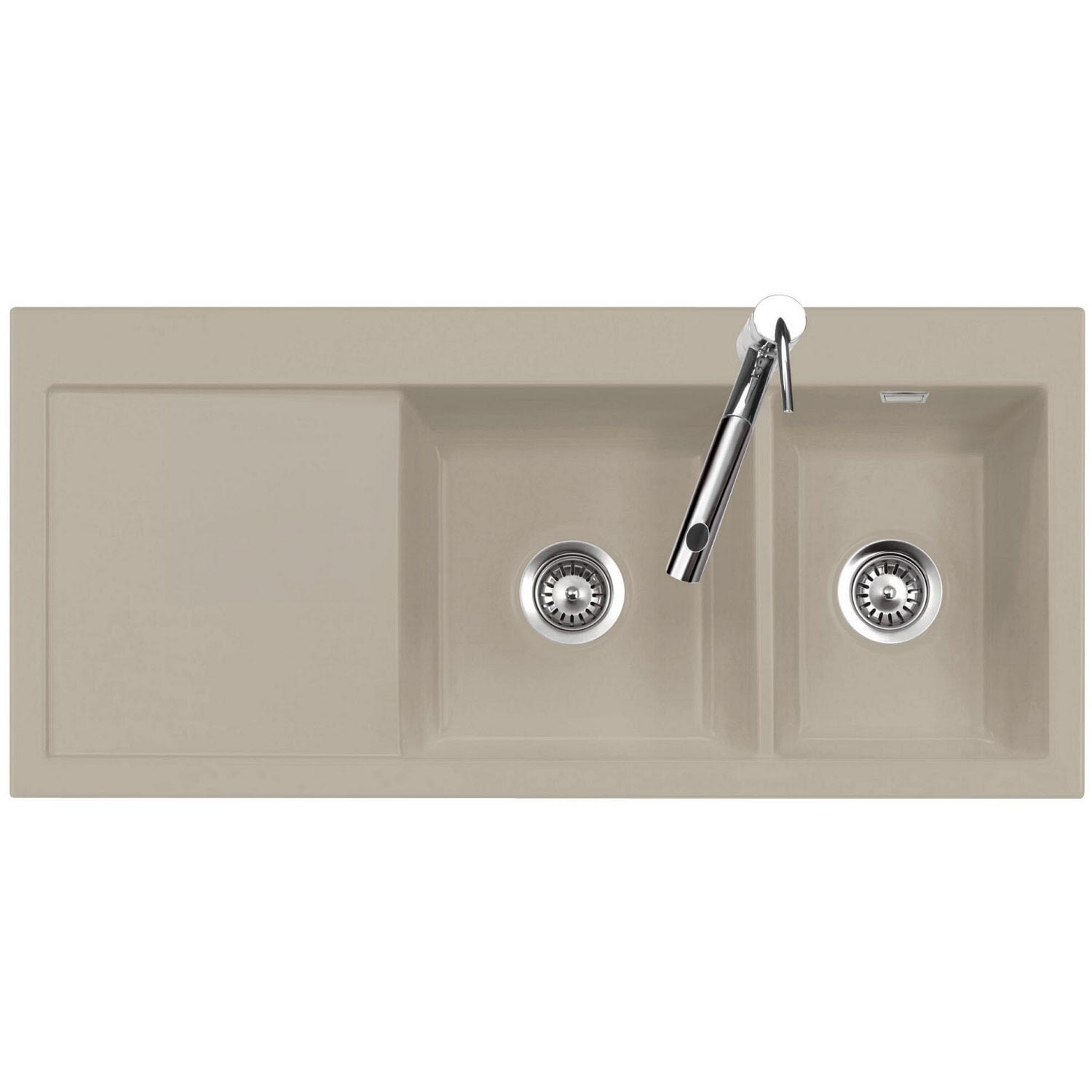 Systemceram Keradomo Mera Double Einbauspüle rechts mit Handbetätigung, inkl. Armaturbohrung