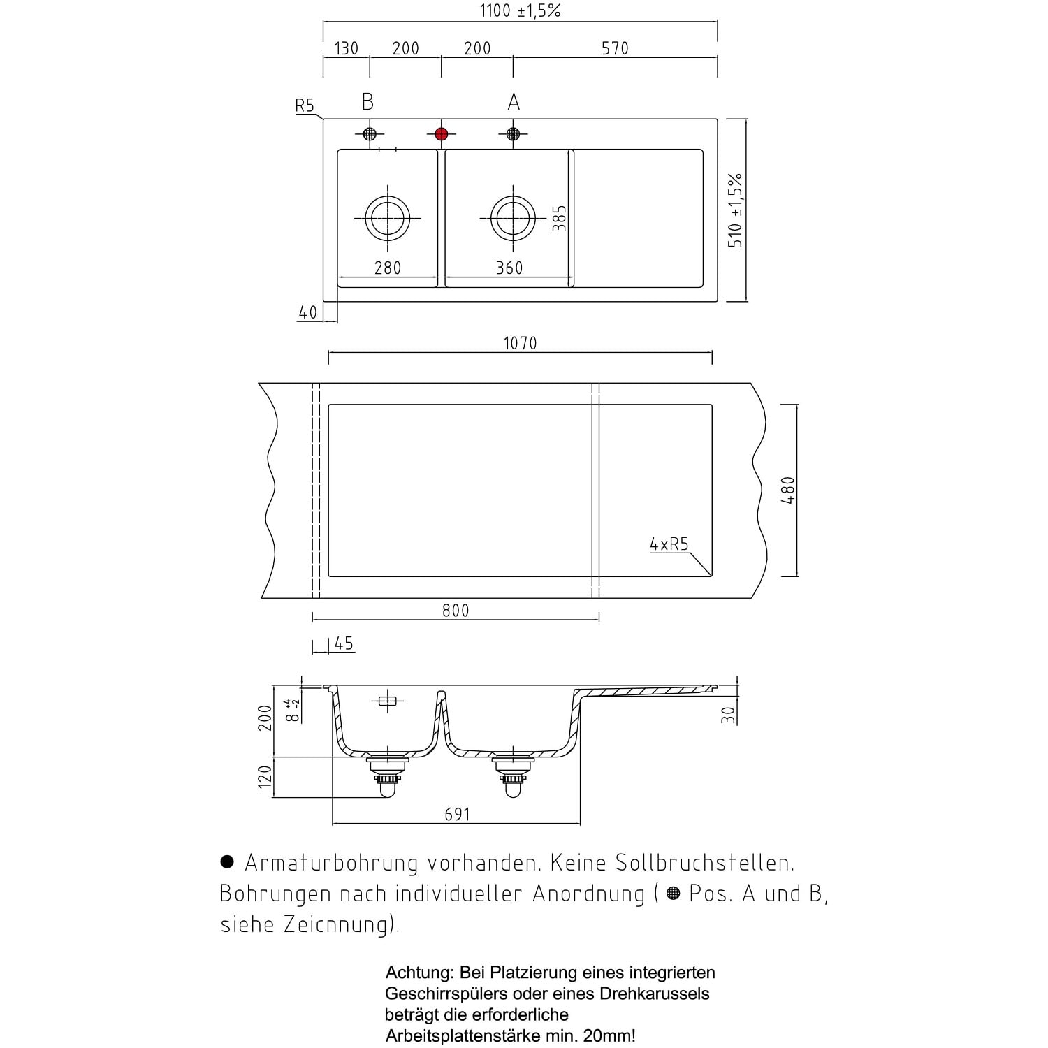 - inkl. Armaturbohrung