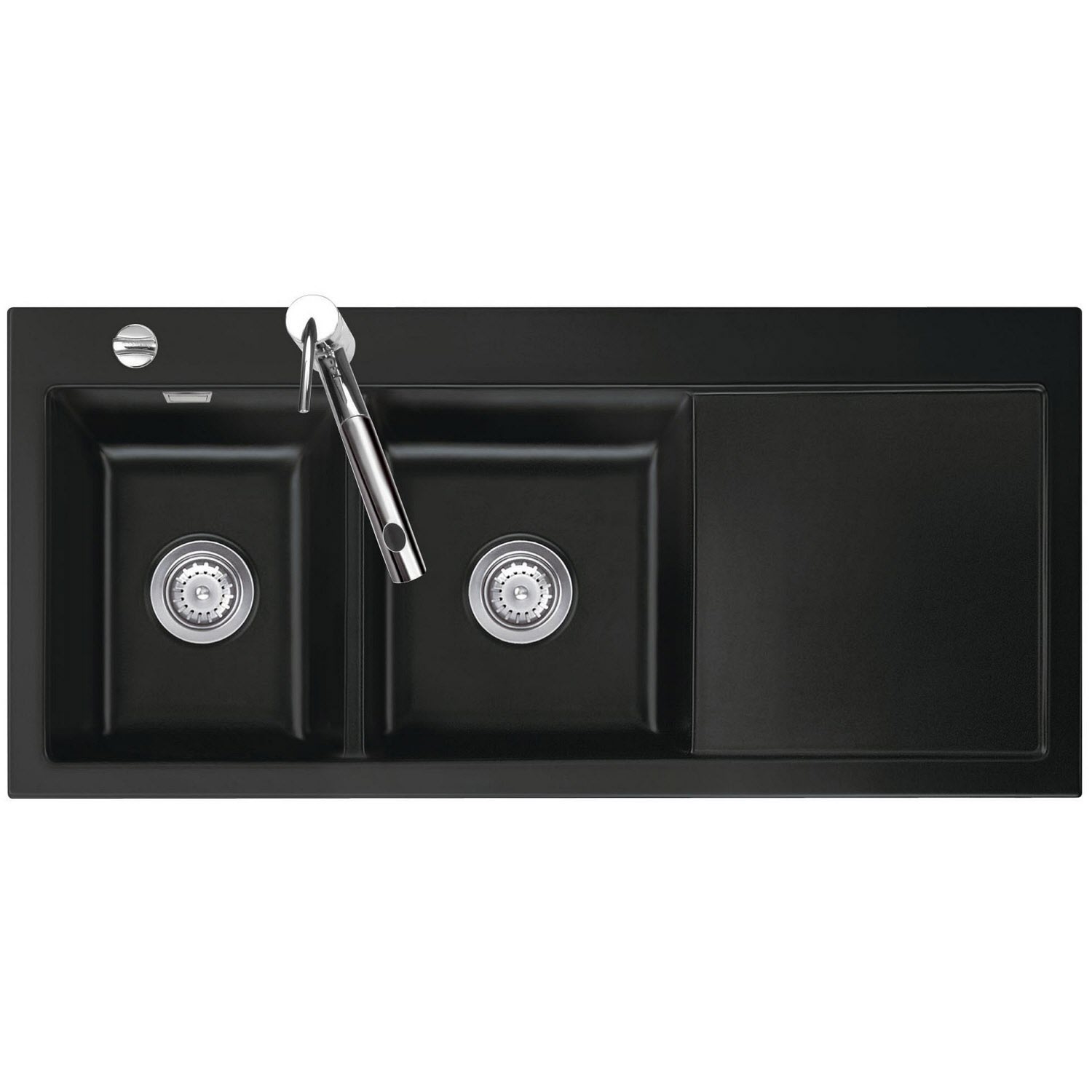 Systemceram Keradomo Mera Double Einbauspüle links mit Excenterbetätigung, inkl. Armaturbohrung