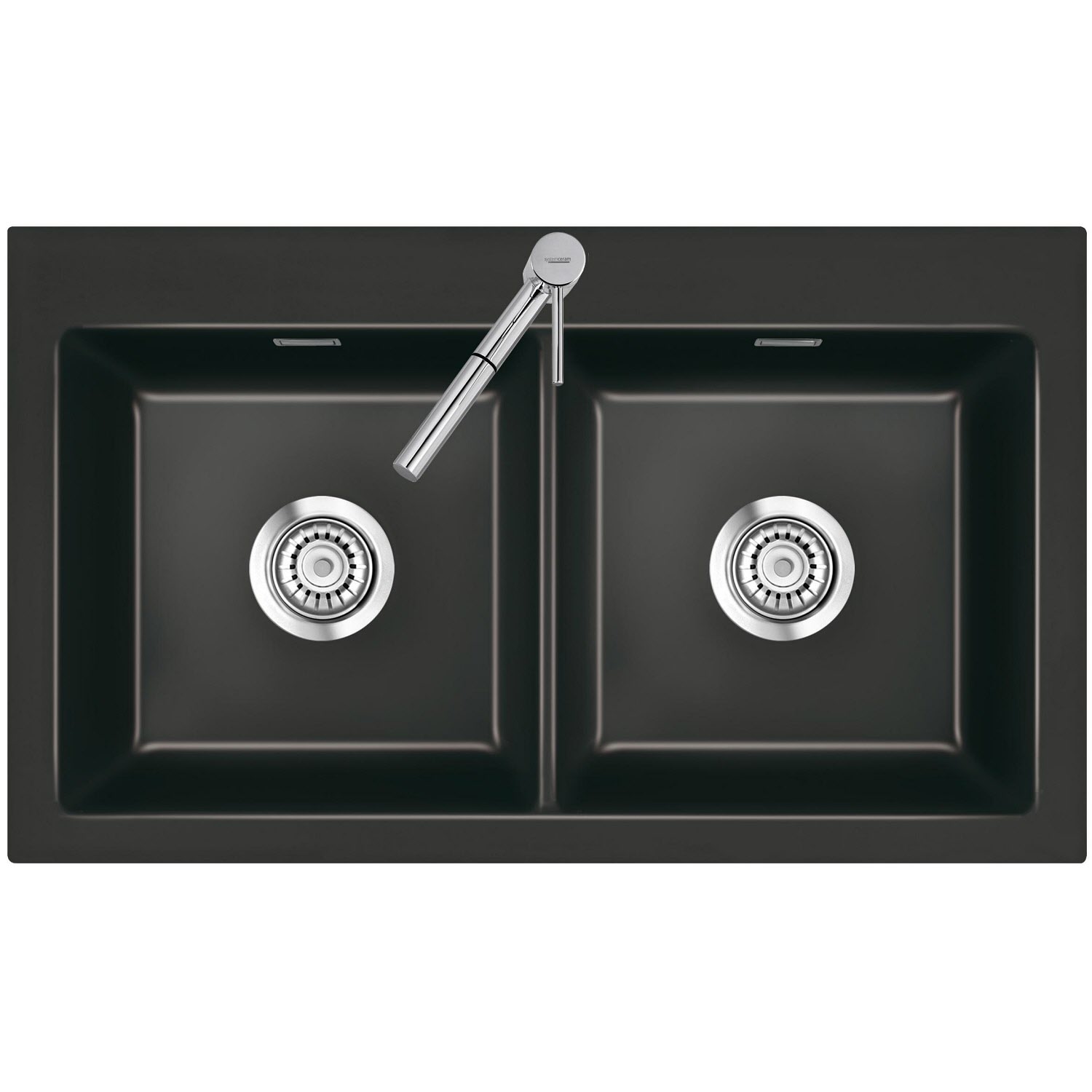 Systemceram Keradomo Mera Twin Einbauspüle mit Handbetätigung, inkl. Armaturbohrung