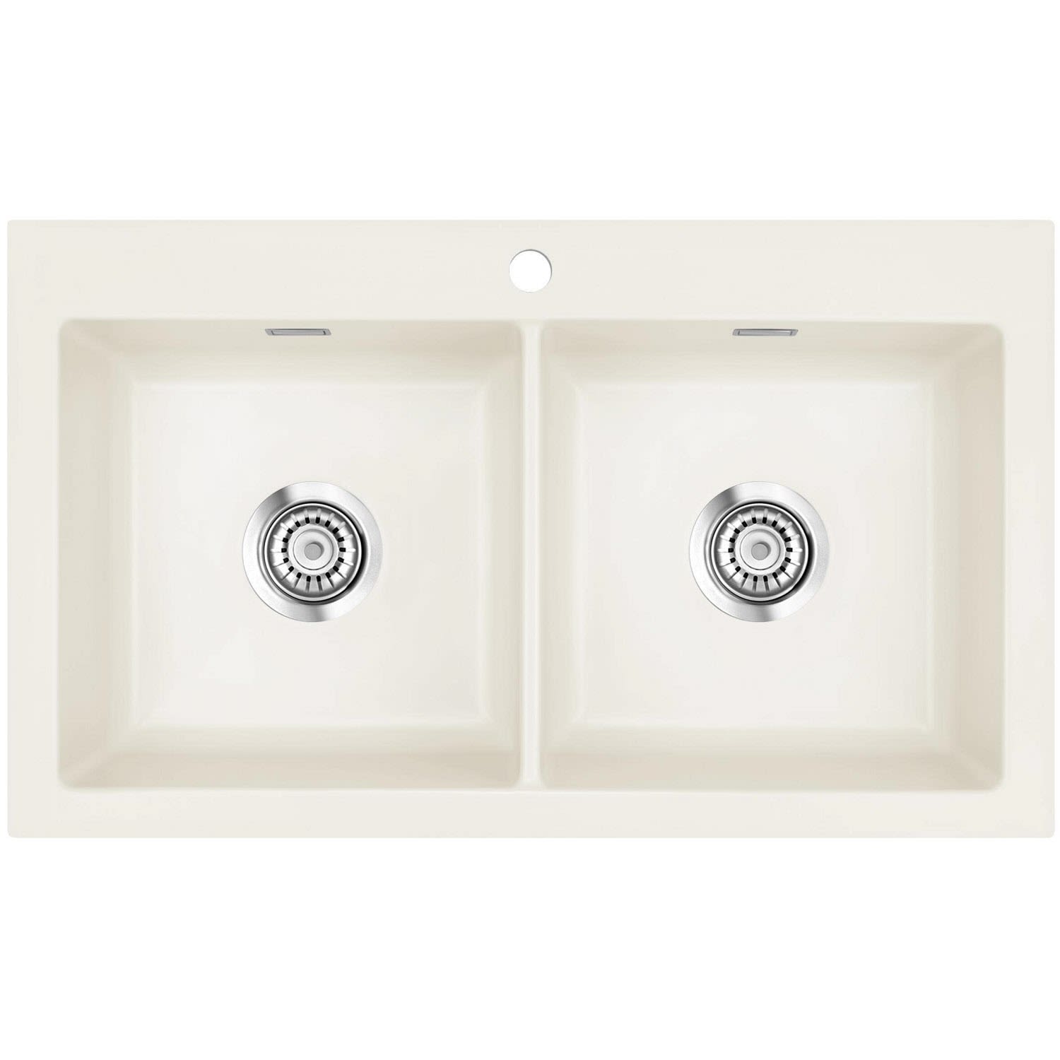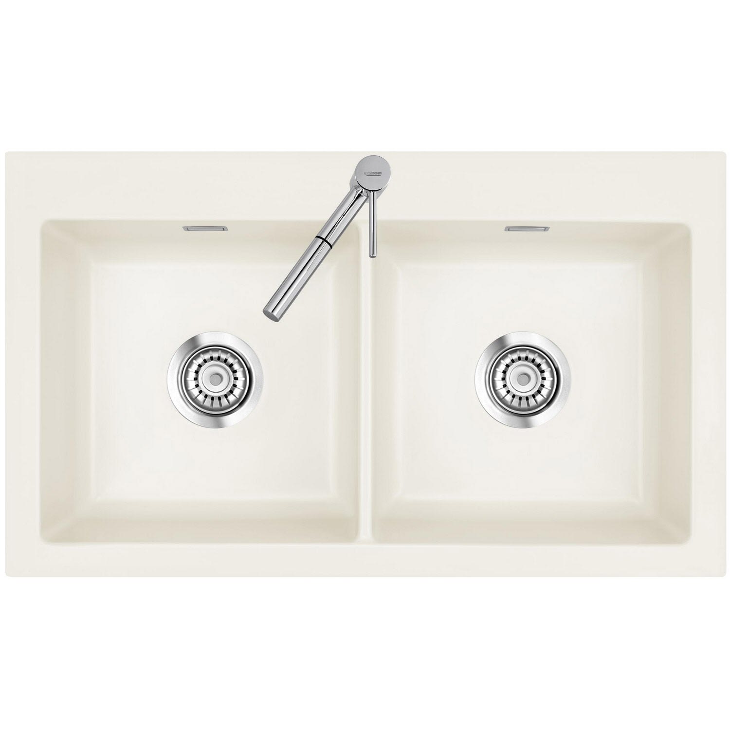 Systemceram Keradomo Mera Twin Einbauspüle mit Handbetätigung, inkl. Armaturbohrung