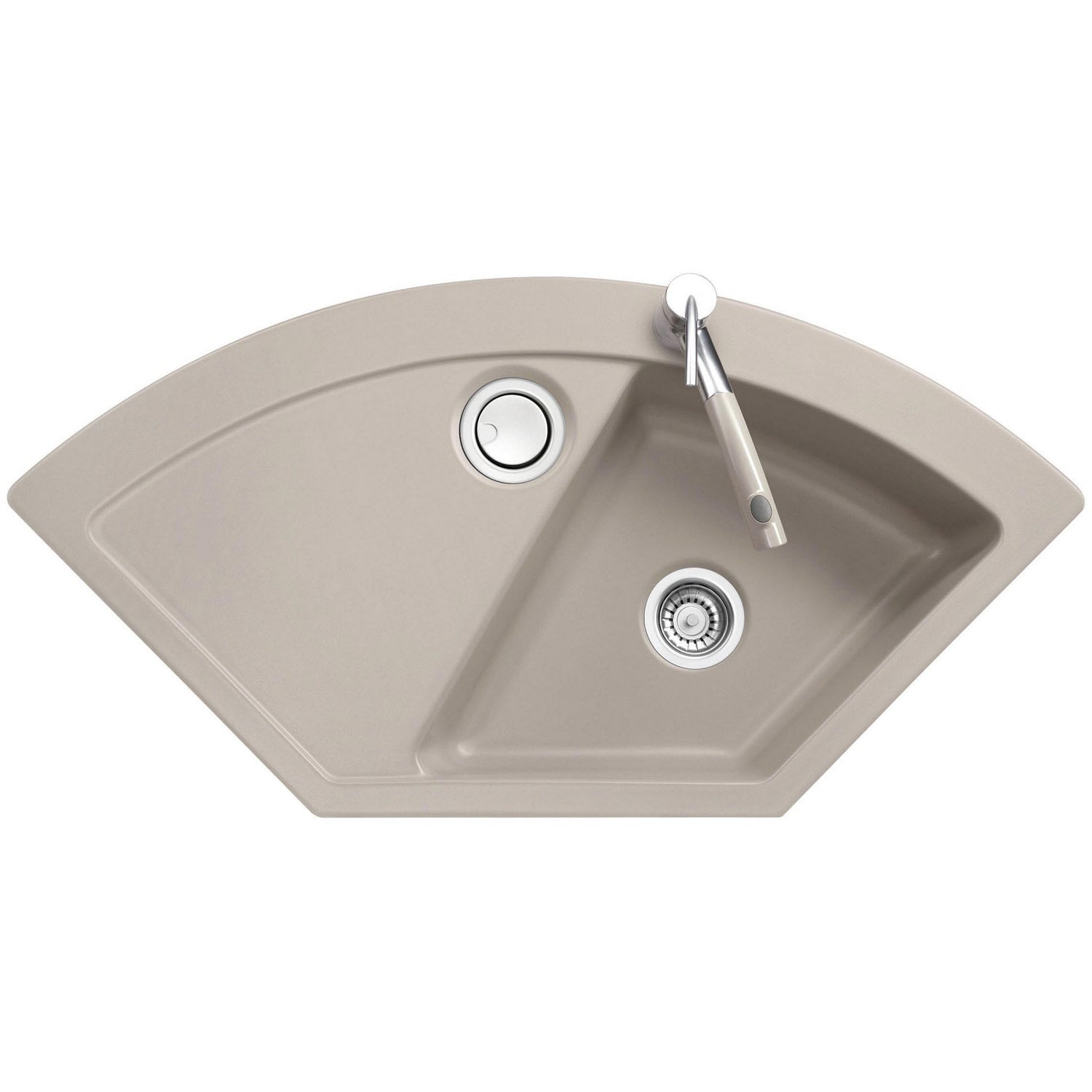 Systemceram Keradomo Mera Eck Einbauspüle mit Handbetätigung, inkl. Armaturbohrung