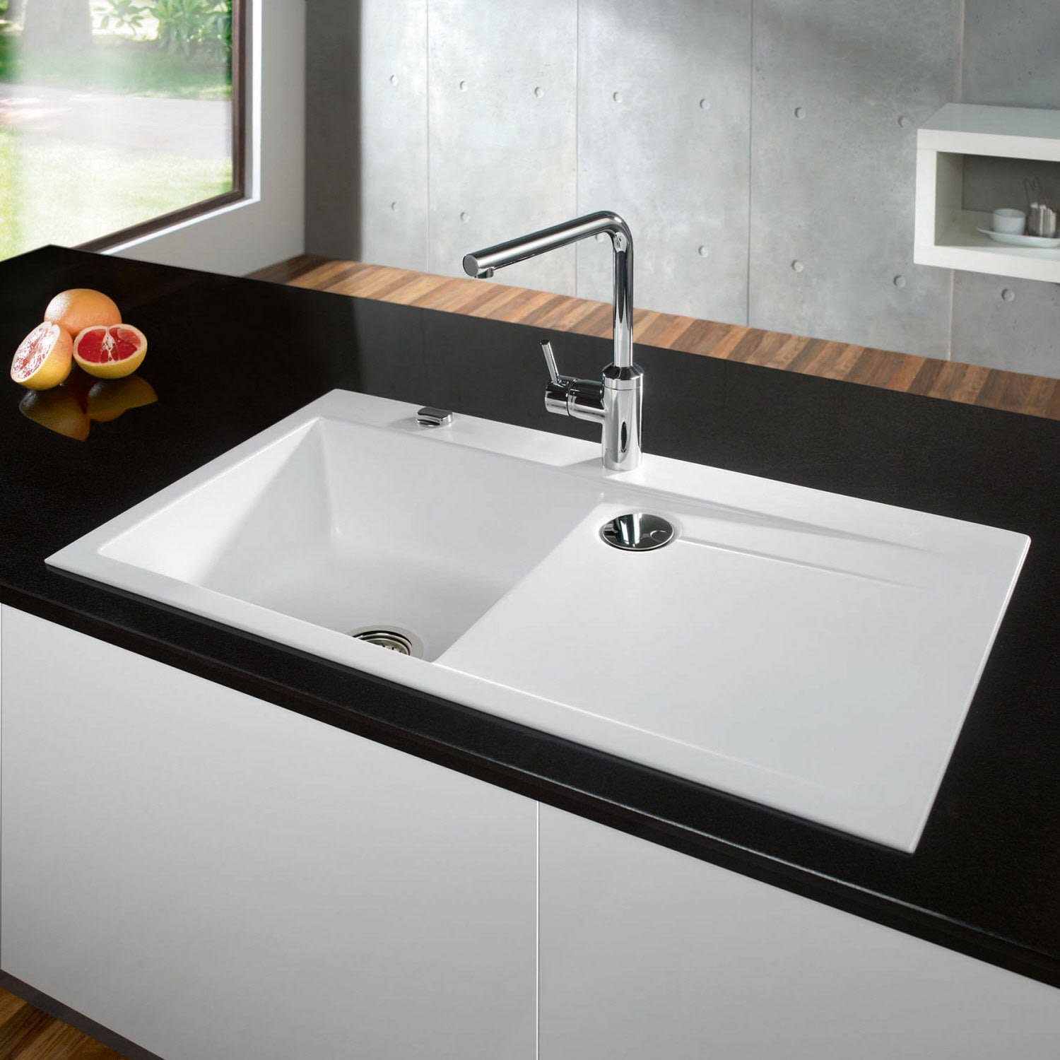 Systemceram Keradomo Stema 90 Einbauspüle links mit Excenterbetätigung, inkl. Armaturbohrung
