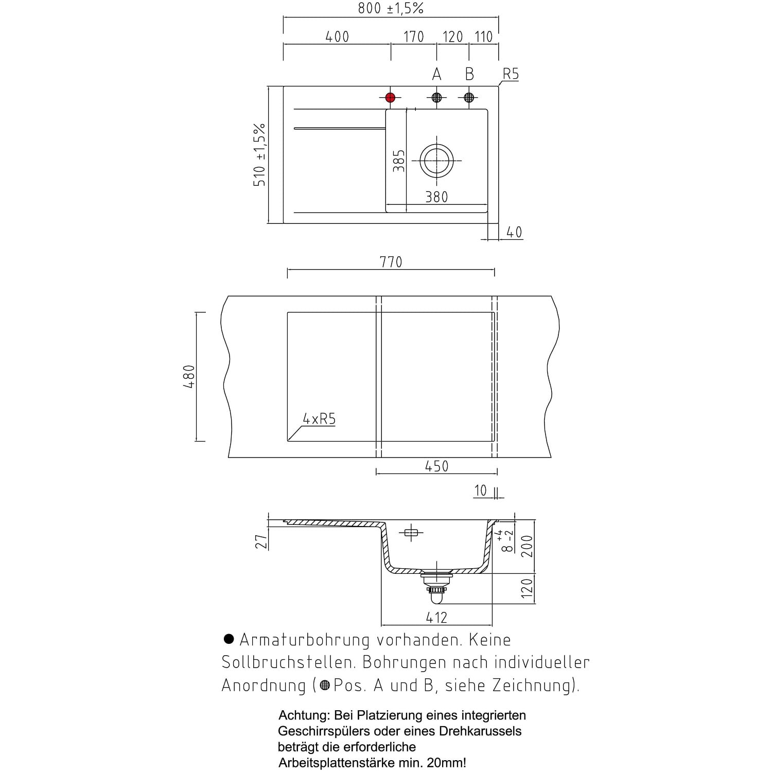 - inkl. Armaturbohrung