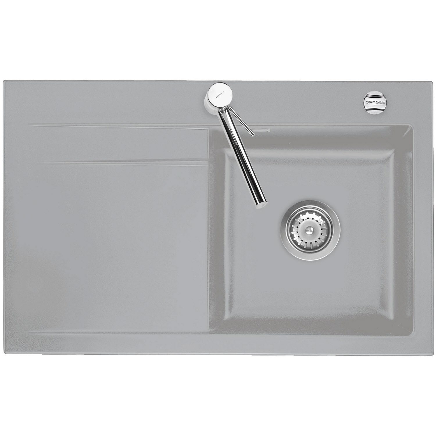 Systemceram Keradomo Stema 80 Einbauspüle rechts mit Excenterbetätigung, inkl. Armaturbohrung