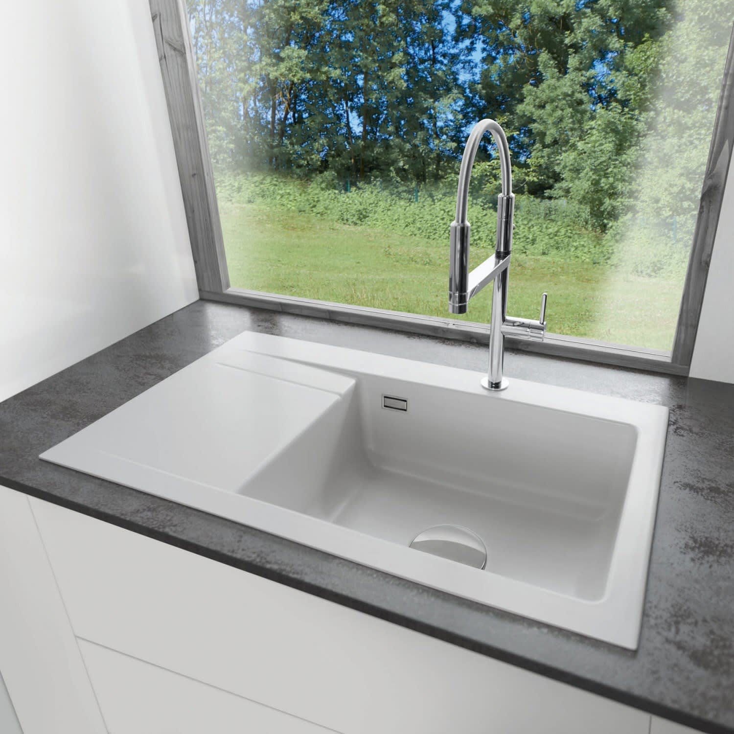 Systemceram Keradomo Stema 86 SL Einbauspüle rechts mit Handbetätigung, inkl. Armaturbohrung