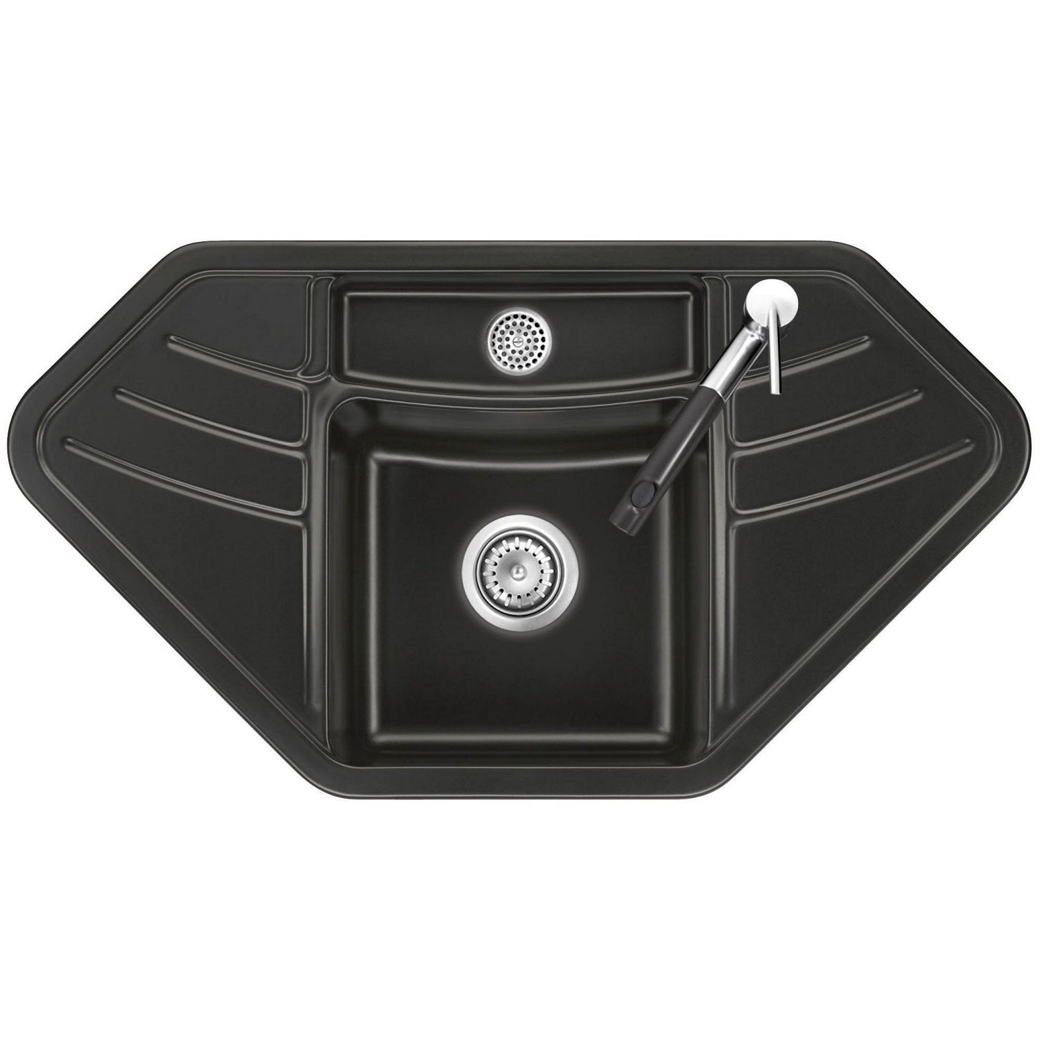 Systemceram Keradomo Vega Eck Einbauspüle mit Handbetätigung, inkl. Armaturbohrung