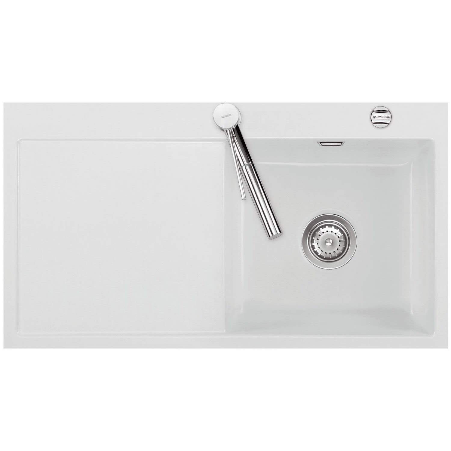 Systemceram Keradomo Mera 90 F Spüle rechts für flächenbündigen Einbau mit Excenterbetätigung, inkl. Armaturbohrung