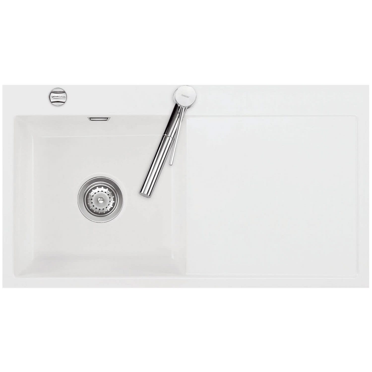 Systemceram Keradomo Mera 90 F Spüle links für flächenbündigen Einbau mit Excenterbetätigung, inkl. Armaturbohrung